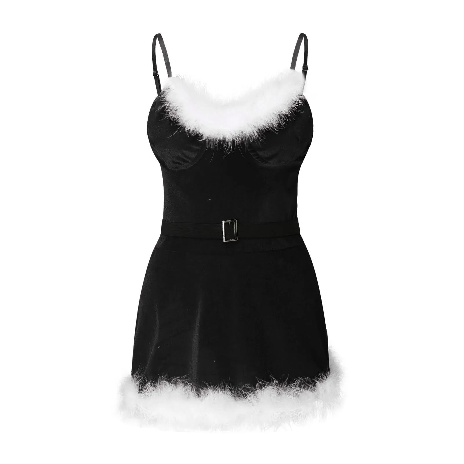 Women's Christmas Net Hang Neck Strappy Skirt Sexy Pajamas Fun Underwear Lingerie Set Lenceria Femenina